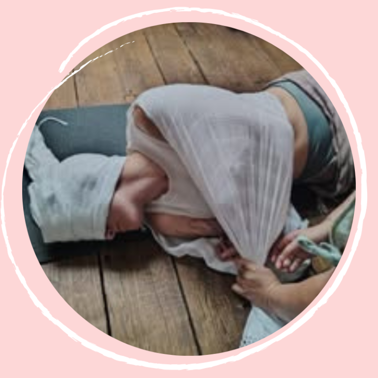 Ce moment se déroule au sol et peut se combiner facilement avec un autre rendez-vous (serrage du bassin, visite postnatale, pour terminer un rendez vous Doula, etc.)